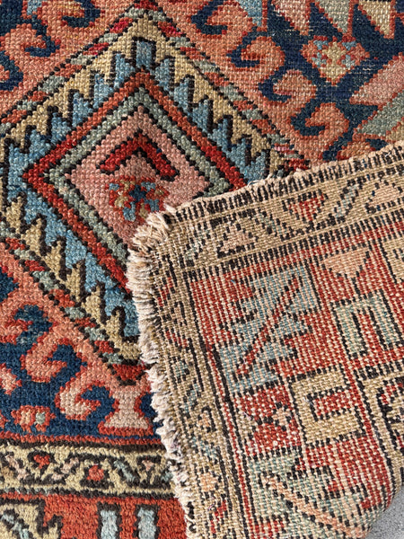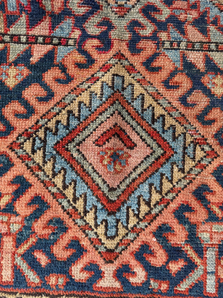 Scatter rugs like this one don’t just ground a space; they bring a story from a weaving village nearly a century ago. With its bold motifs, natural dyes, and enduring wool, this Gharajeh Heriz piece is as functional as it is artful. Bring it on…this rug can handle it. Thanks for shopping small.