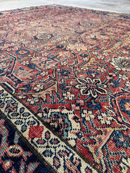 Woven circa 1900. Clean, floor ready, and full of history. Please see pics for full character and condition.
