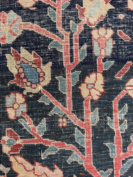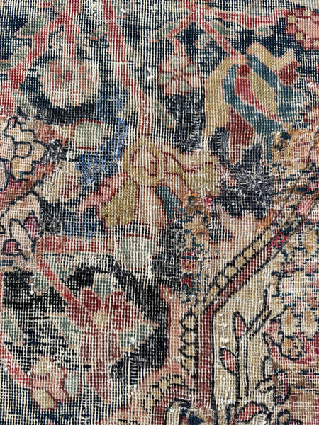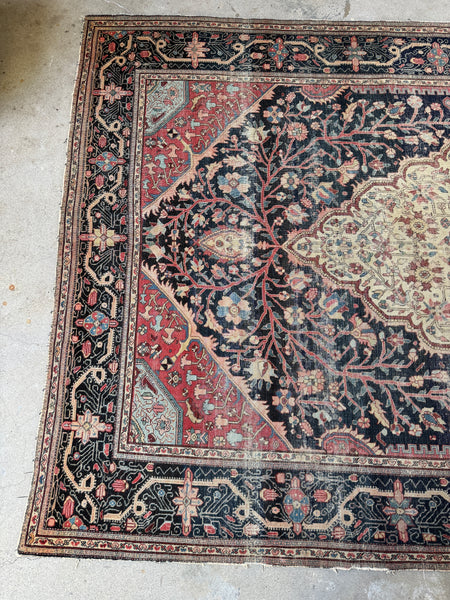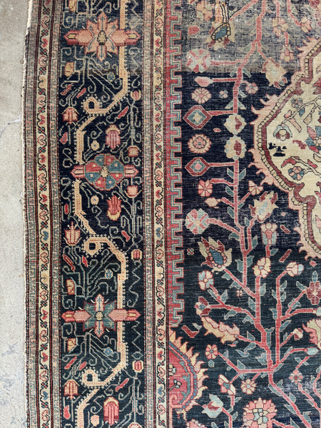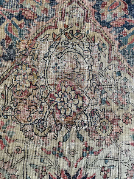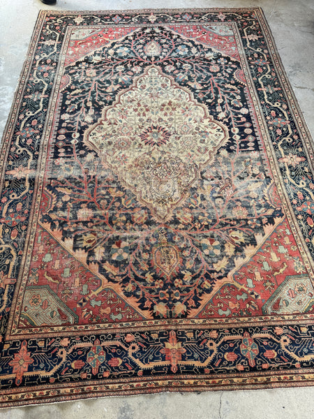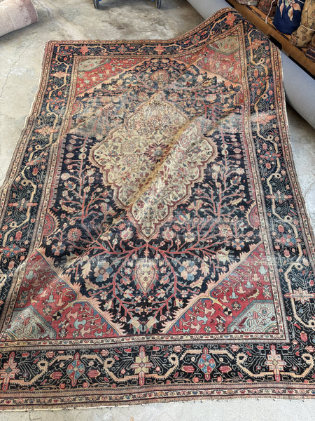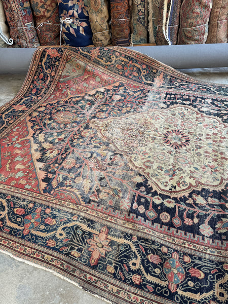 This early 1900s worn antique Persian was very finely woven and back in the day, Ferahan rugs were generally designed for Persian aristocracy. It took highly skilled hands of female weavers to produce this Persian; it is finely knotted and was labor intensive.