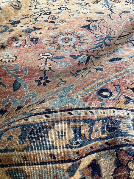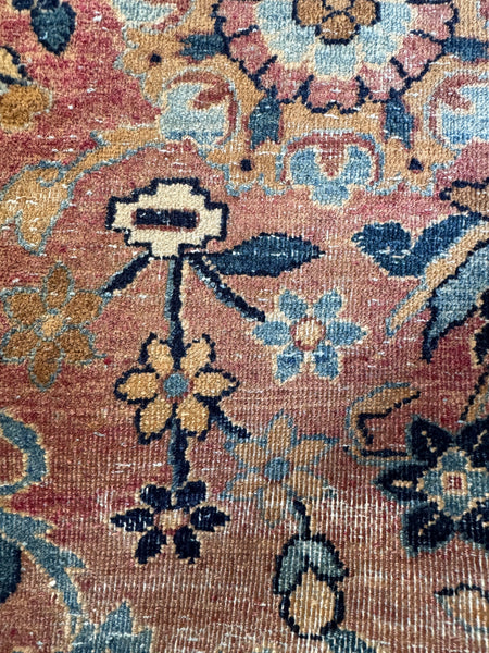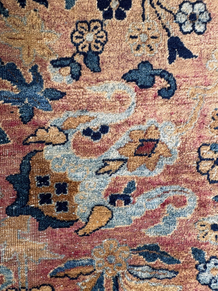 The blues are a standout…layered, nuanced, and a big part of what makes this piece feel so unique. Durable, beautifully aged, and in nice condition for a 1920s Kerman… with that one of a kind energy old rugs either have… or don’t. This one absolutely does.