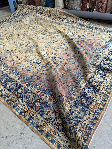 A seriously special 1920s Persian Kerman coming in at 9’9 x 12’9…and she’s got that some roar and subtle power. This is one of those rugs… you’re either completely in or it’s not your thing at all. There’s no middle. It hits you right away and you know.