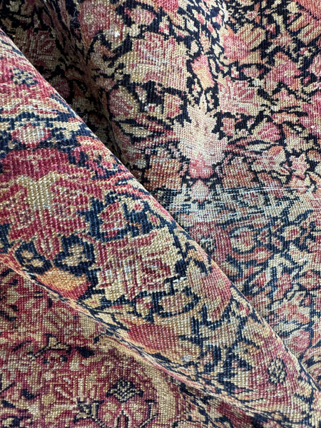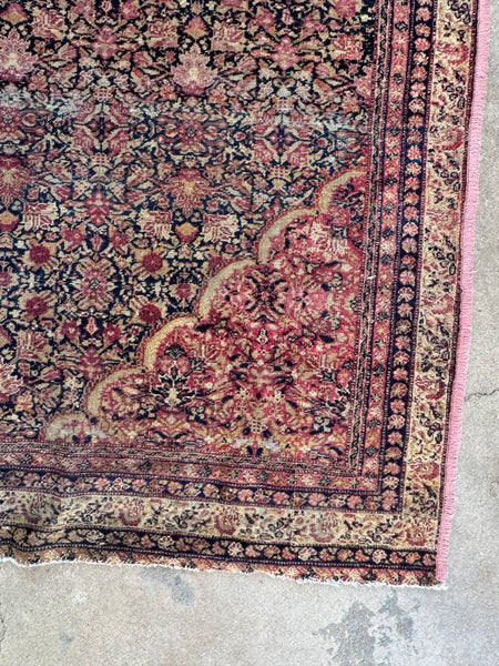 This antique Persian Ferahan is for the lovers of fine weave, tiny details, and rugs that simply know what they’re doing. Crafted in the 1880s in Persia, it’s everything a Ferahan should be: tightly woven with vegetable dyed wool and packed with a field of small-scale botanicals that really show off the craftsmanship.