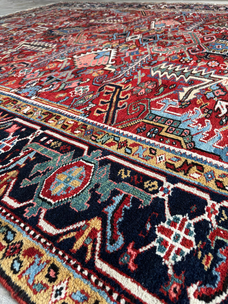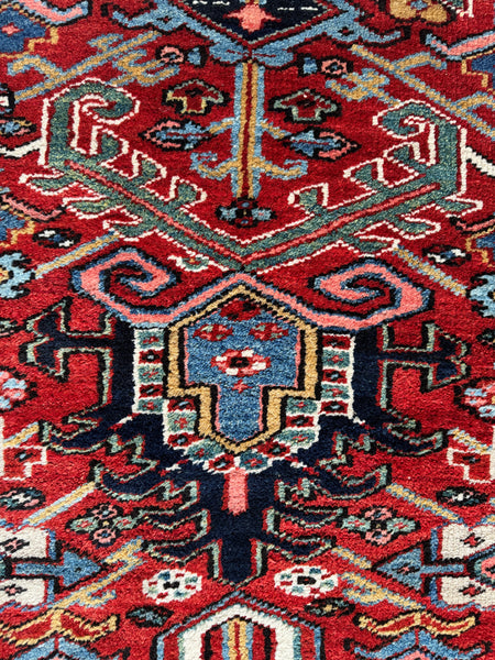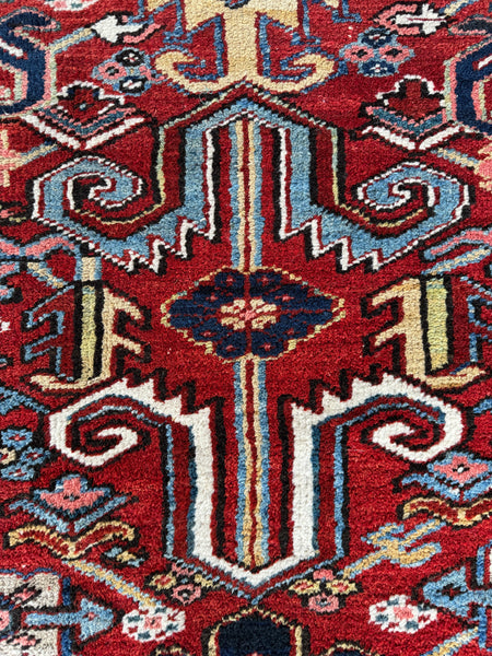 The dyes are fully saturated natural vegetable dyes, and the wool is soft, healthy, and glowing in that way only real old-world wool can. It’s vibrant, it’s sturdy, and it’s been aging like a champ for nearly a century. The pile has great body and the rug has that heavy weight you feel when you try lifting an end, a sign that it was woven to last.