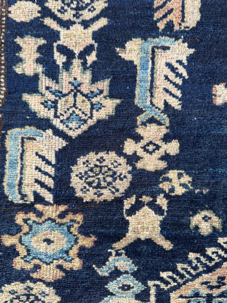 Condition? Amazing. Nice even wool pile, clean look, and very floor ready. Handwoven with vegetable dyed wool, strong village character, and a seriously stunning palette. Basically…a navy rug that isn’t boring for even one second. This is a fine Persian and a great one to collect. Please check out the video below of this beauty in action.