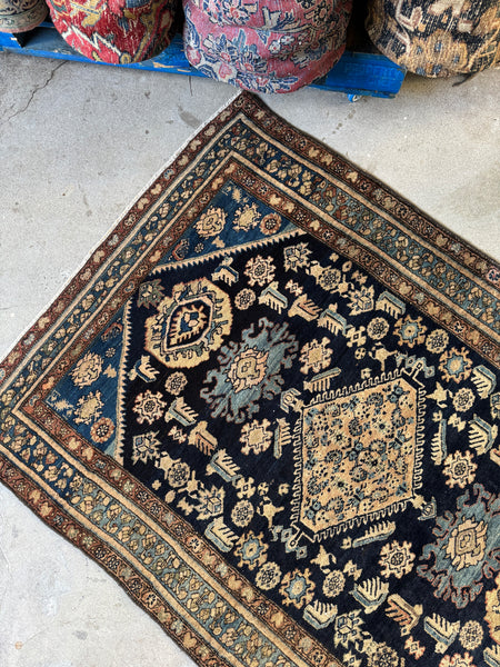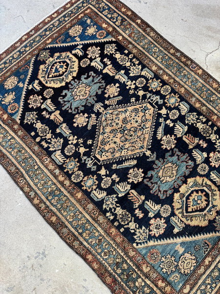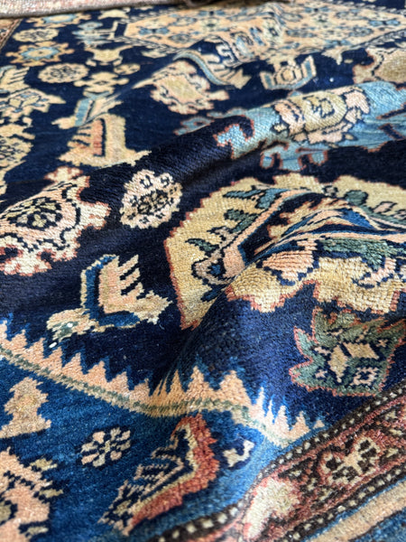 This antique Persian Malayer (circa 1920s) is the real deal…a village woven beauty with an inky navy ground that makes every single motif pop. The wool is so soft to the touch, with that high sheen you only get from quality old wool; it's the good stuff that modern rugs just can’t fake.