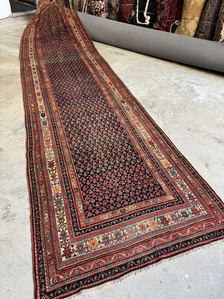 This antique Malayer runner from the 1920s is all about amazing, solid construction with great length that'll cover a lot of ground.