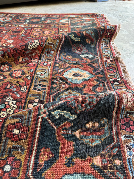 In great condition for its century-old life, this Heriz holds both structure and soul...a durable work of art woven to last and to keep turning heads for generations.