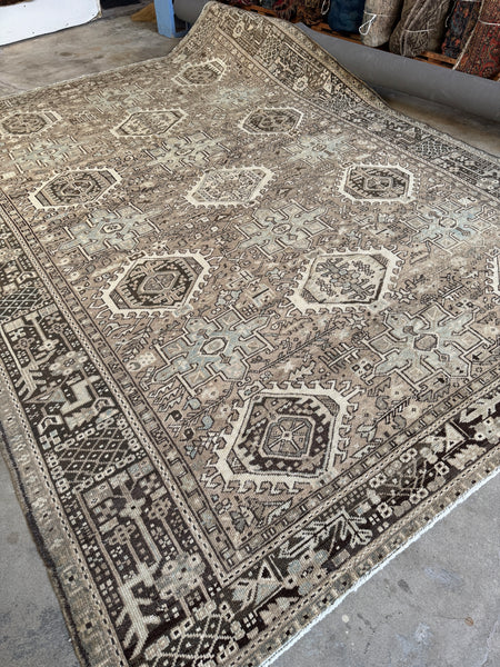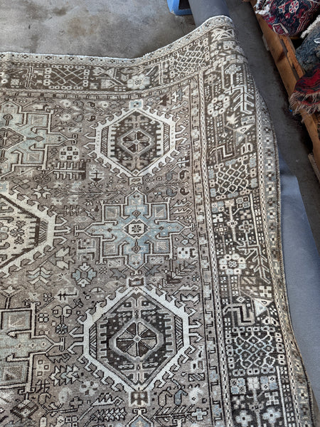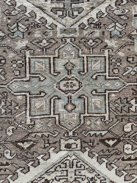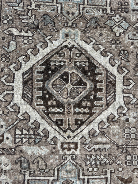 For those who like a neutral palette and a tribal design with magnificent geometric art, this awesome vintage Persian Gharajeh rug from the region of Heriz will play its part and bring the whole room together. This Persian features larger scale medallions all throughout that has great impact and a wonderful presence with tribal design and style.