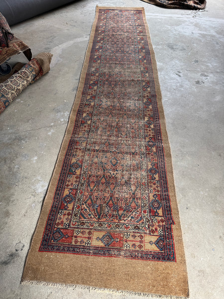 This rug has a low pile with scattered wear from generations of use, and it also carries one small patch (shown in photos), a mark of its age and survival. The sides have been fully secured with hand binding, ensuring strength for continued use. A true old Persian runner that balances durability, art, and rare proportions.