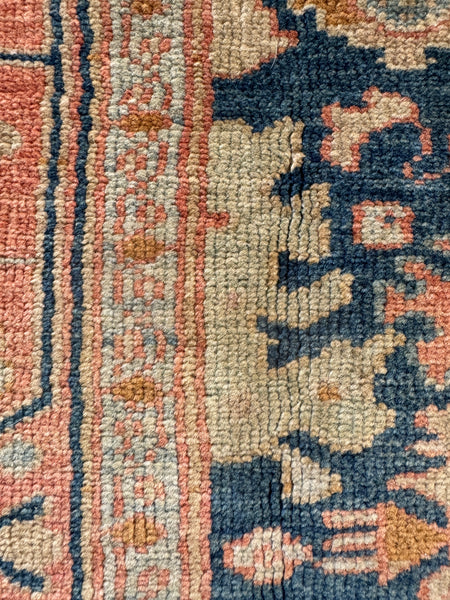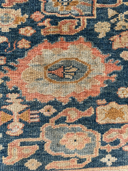 What truly sets this piece apart is not just the awesome color-ways, but it’s skinny width. At under three feet wide, this is a genuinely narrow runner, which is far less common. Most antique runners were made broader, making this a rarer and more flexible find for narrow halls, kitchens, or tighter pass through spaces.