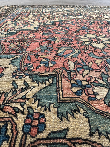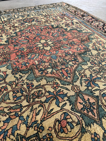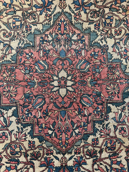Handwoven with vegetable dyed wool. Curvilinear floral art and finely detailed work. A true heirloom and a rare example of Persian Ferahan weaving from the first quarter of the 20th century.