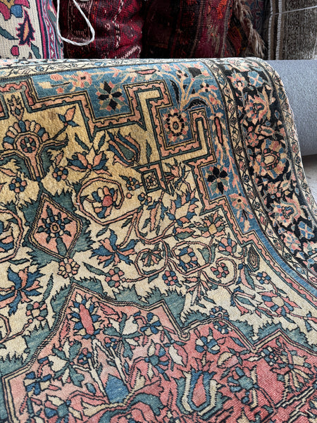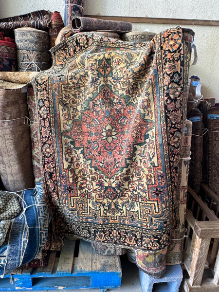 Here’s an antique Persian Ferahan, a well-loved rug from the circa 1900-1920, woven with a remarkably tight and durable weave that speaks to the craftsmanship once reserved for royalty. Ferahan rugs were historically made for Persian aristocrats and nobility, and this piece carries that legacy, in beautiful condition for its age.