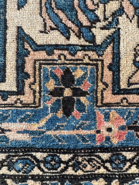 You’ll notice on the underside an old backing or stabilizing treatment applied many decades ago. This was a common practice at the time, done to help protect the foundation, add weight, and guard against edge wear and fraying as the rug aged and was lived with. It’s part of this piece’s long life story and does not impact the integrity or beauty of the wool pile on the face. The rug presents beautifully from the front and remains sturdy, usable, and floor ready.