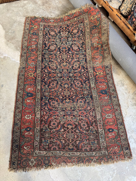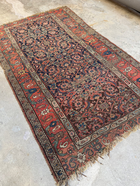 Worn, yes…but incredibly solid. From early 1900s. The structure is dense and tight, with that unmistakable Bidjar construction that feels weighty and dependable even after decades of use. These rugs were woven in western Persia with an emphasis on longevity, using packed, resilient wool that holds together long after the pile has mellowed down. This one still has great bones and a grounded presence.
