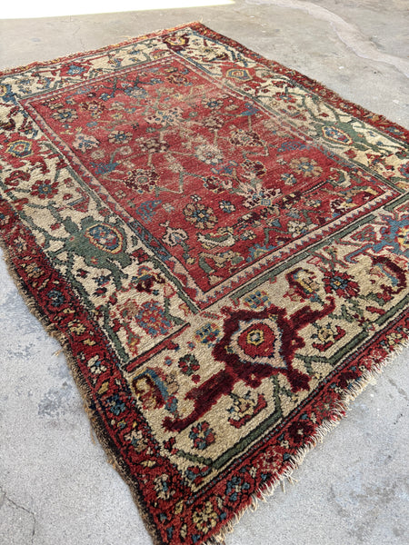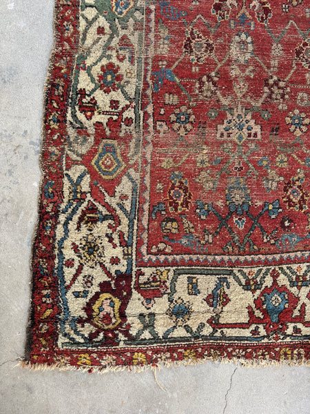 If you like them ancient, worn, and full of character…this 19th-century Sultanabad-Mahal will hit the spot. Old-world wool, veggie dyes, and that super lovable lived-in look that only real age can pull off.